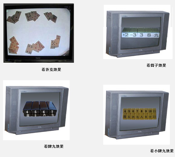 二、字体清晰:原来的所谓一对一镜头,也就是紫外线镜头,光线要求亮,图像不清楚,现在的一对一镜头光线很暗也行,并且字体清晰,扑克和黑牌九背面呈白色字体,筒子和下面白色的牌九呈黑色字体。