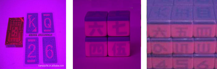因为目前只有一对一隐形眼镜,没有戴在外面的框架眼镜,所以无法像白光牌一样透过外镜拍摄看牌效果,但客户来了我们可以帮他戴上隐形眼镜看效果,保证看牌清楚,配戴舒适。客户可带牌过来或寄牌过来加工,任何普通扑克、麻将、牌九都可加工成一对一隐形眼镜看的牌,来牌加工或办理邮购。